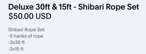 Rope ranges from $35-$50 per bundle set. Posh is our current rope in stock, however, we will have more jute available soon.